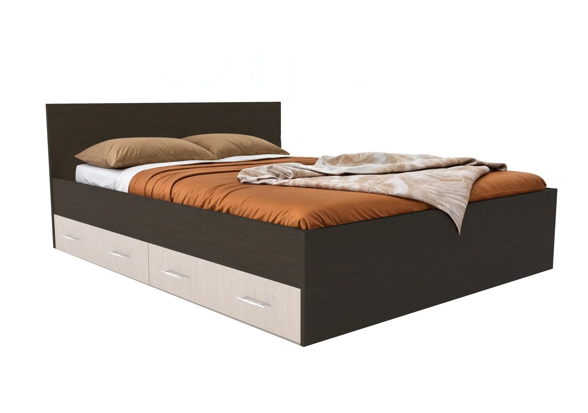 Кровать Амелина с ящиками 140, венге/дуб