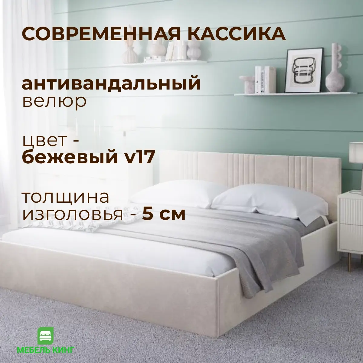 Кровать Тиффани 90, велюр бежевый v17